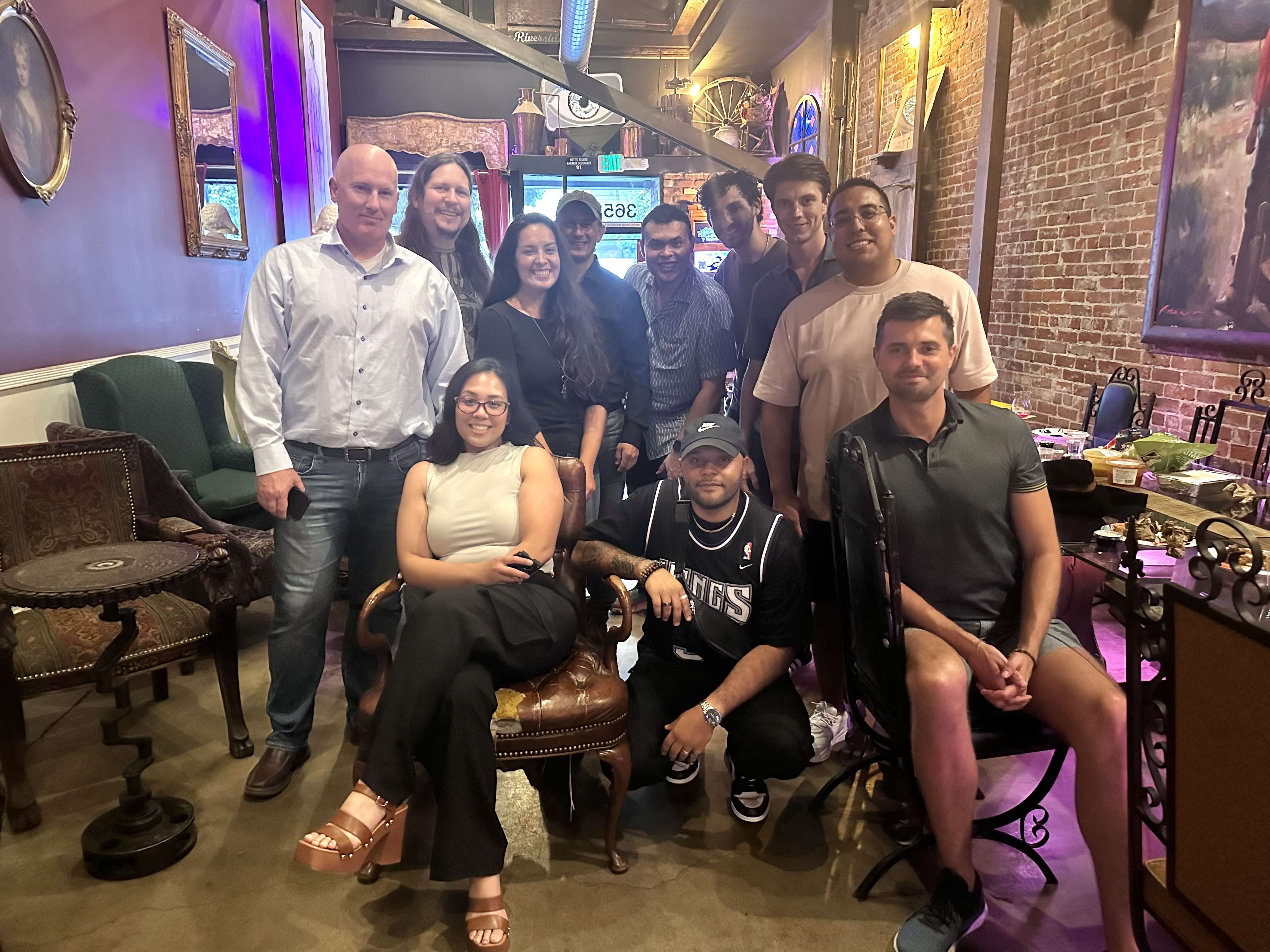 Group of startup founders smiling at a local restaurant for the Startup Social mixer